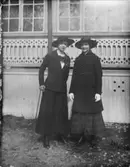 "Lina Bodén och A. Martinsson. 1/50s. f. 11. 14.00 och förstärkt sol. 30/4 1916. Imperial." Porträtt av två kvinnor utomhus framför ett bostadshus.