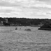 Barnens dag. Fest utomhus. Mycket folk, vimplar och orkester.