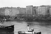 Hornstulls Strand mot Bergsunds Strand från Wollmar Yxkullsgatans början. I bakgrunden Liljeholmsbron och t.h. kv. Tången.