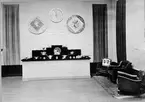 "Bygge och Bo" utställning på Liljevalchs konsthall 1928. Glas och engelska fotöljer.
