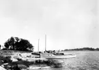 Familj på brygga. Charles Peterson, Kate Fogelmark och Stig.
