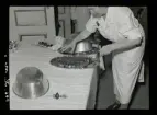 Mjölsiktning. Grovsiktning av rågmjöl medelst tagelsikt. Jösse härad, Mangskogs socken, Värmland.