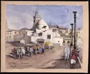 "El-Djema Moskén". Alger 22 mars 1886. Akvarell av Fritz von Dardel