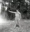 Instruktör och elev i uniform m/1959 från Gotlands artillerikår A 7 övar med pistol m/1940.