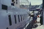Ubåt, minsvepare och fisketrålare i hamn innan dagens sökningsarbete börjat.