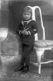 Porträtt av en liten flicka i sjömansdräkt.