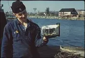 Frimärke ur Gösta Bodmans filatelistiska motivsamling, påbörjad 1950. Frimärke från Nya Zeeland, 1936. Motiv av ullsortering. "Imperiets handelskongress i Wellington, 1936".