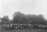 Alkärret, folkskolans trädgårdsland. Skolelever och lärare.
