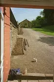 Skara. Torsgatan 6, våren 1934. Barbro, gift Ramberg, Vara (syster till Stig Rehn). Damen förmodligen Elsa Rehn (Stig Rehns mor). Fastigheten Torsgatan 6 förvärvades och restaurerades av Elsa och Karl Rehn 1933.