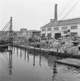 Färjan 264 M/F Scania vid utrustningskajen. Till höger i bakgrunden syns maskinverkstaden.