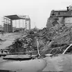 Bostadsrättsföreningen Islandsgården under byggnation, kvarteret Örnen, Östra Ågatan - Bäverns gränd, Uppsala 1936. Delar av krogen "Sju helvetes gluggar" är kvar