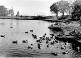VIKTORIASJÖN MED ÄNDER VID STRANDKANTEN.