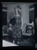 Rumsinteriör, en kvinna i högtidsdräkt. Barbro & Co.