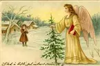 Kort: "God Jul och Gott Nytt År!". Barn som klättrar på ballonger.