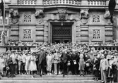Personer på bilden: generalpostdirektör Kiörboe Danmark postdirektör Briem Island kontorchef Holmblad Danmark fuldmaegtig Waagepetersen Danmark sekretaer Bögh Danmark generalpostdirektör Juhlin Sverige generalpostdirektör Albrecht Finland expeditionschef Sommerschild Norge byråchef Helsing Norge byråchef Askberg Sverige