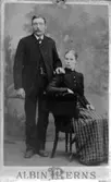 Kabinettsfotografi: porträtt av okänd man. Han sitter vid ett bord och vilar vänster arm på bordet. En klockkedja i västen.