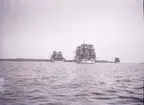 Enligt text som medföljde bilden: "Lysekil. Skeppsgossefartygen Najaden, Falken, Gladan från land 23/6 1899".