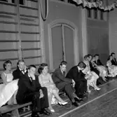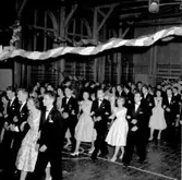 55-årsjubileum 8/6 1960. Återseendets glädje utanför den gamla skolan. I mitten Bertil Ekberg, Dagsnäs.