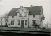 Station från 1863. Trästationshus i två våningar. 1924 nytt stationshus. Det gamla huset revs, men byggdes upp som privatvilla ett par hundra meter från dess gamla plats. Det nya huset var av trä med putsad fasad. Stationen avbemannad från 28 maj 1978. Stationshuset uthyrs. En enkel väntkur finns på plattformen. Station anlagd 1898.