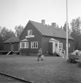 Stationen Hållplats anlagd 1928. Envånings stationshus i trä sammanbyggt med godsmagasinet