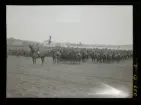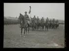 Män i äldre uniformer, till häst. Skansen, Stockholm.