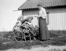 Tekla "Titti" Karlsson f. 1902 d. 1972. Ulla Britt Karlsson-Jägrud i barnvagnen. f. 1928. Flickan? Fotot taget i Göteborg 1928.