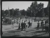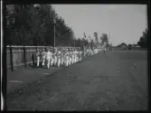 Serie om två fotografier som visar ungdomsorkestern Göta Lejon på besök i Mölndal, okänt årtal.