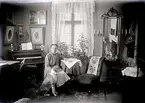 Framför orgeln tv sitter Julia W. De två övriga kan vara hennes två systrar, Jenny och Jördis. Bilden är tagen inomhus, i befintligt ljus. Texten på den lilla runda tavlan, på väggen framför Julia, står det Gruss aus Stettin.