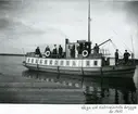 Wega. Kortet ät taget i Västervikshamnen i Strängnäs runt 1922. Hon fanns i Strängnäs samtidigt som bogserbåten Agne. Wega såldes därefter till Fagersta. Nils Sander t.h. De andra två är okända, varav den ena dock är maskinist ombord.