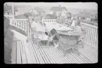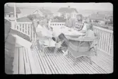 Kafferep. Några kvinnor sitter och fikar utanför familjen Morthensens villa Solveden, Djursholm.