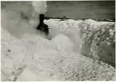 Hallsbergsskottarna 5 januari 1966 Ett stort antal män i arbetskläder skottar bort snö runt järnvägsvagn