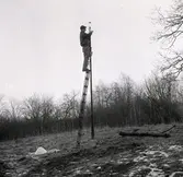 Brandbil vid brandstationens lokaler i nuvarande skolfastigheten vid Karlbergsgatan. Bilden tagen 1946.