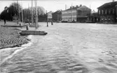 Enligt tidigare notering: "Hamnen väster om Järnbron med hamngatorna. Huset på hörnet av N. Hamngatan under rivning."