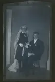 "Signe och Nils Pettersson, Rosenlund" Porträtt av ett brudpar.