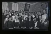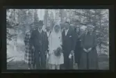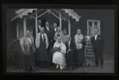 "Väsby" Grupporträtt med ett brudpar framför ett hus.