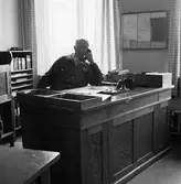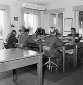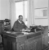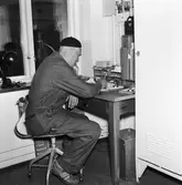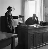 T h baksidan på järnvägsstationen i Ljungaverk. Det lilla huset t v innehöll toalett och vedbod. Längst tv fabrikskontoret. I förgrunden fotbollsplanen.