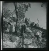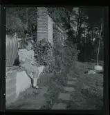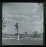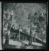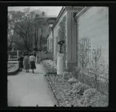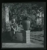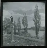 Rundeln framför Julita gård i Södermanland, före 1930. Utsikt över sjön Öljaren. Plantering med sommarblommor och agave.