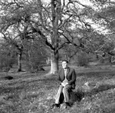 Ingrid Andersson (1918 - 2001, gift Skansing) står på en grusväg cirka 1940. Gården Livered "Majas" ses i bakgrunden.