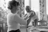 Zigenare 21 oktober 1967 Två unga zigenarflickor dansar hemma i familjens vardagsrum. De är klädda i moderna kläder. Flickan till vänster är klädd i ljusrandig, skjorta, Jeans och mörka stövlar och flickan till höger är klädd i mörk tröja, svarta byxor och vita stövlar. I bakgrunden sitter fyra vuxna kvinnor: två i varsin fåtölj samt två i en soffa. De vuxna kvinnorna är klädda i blusar och kjolar. Ett bord med blommor i en vas som står ovanpå en duk syns till vänster. För fönstret till höger i bakgrunden hänger gardiner. En radio står även på fönsterkarmen i fönstret.
