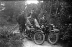 TVÅ MÄN PÅ MOTORCYKLAR, DEN ENA HAR SIDOVAGN. REG NR R131 OCH R596