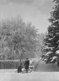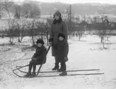 Ett par på sparkstötting. E. Svensson Södra Stationen Örebro.