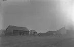Lantgård. "Kärra Johans" gård i Ljungsjön, Ljungby, med bostadshuset till höger och ladugården till vänster. Runt husen syns både häst och ko. Husen är flyttade från Folkared, Sibbarp i slutet av 1800-talet av "Kärra Johan", Johan Andersson, född 1857, i Kärret, Ljungby. Johan dog 1932 och härstammade i rakt nedstigande led på mansidan till den kände snapphanen Ottis Andersson i Höstena, Ljungby. Bilden troligen från tidigt 1900-tal, okänd fotograf.