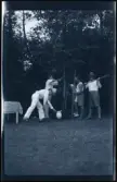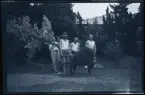 Torvupptagning i Tulebo okänt årtal, Stående är Hulda Nilsson. Sittande från vänster: 1. Okänd flicka. 2. Okänd gosse. 3. Hildur Nilsson. 4. Anna Lisa. 5. Gunnel Alberts. 6. Okänd. 7. Gunhild Nilsson.