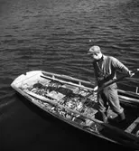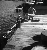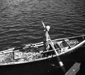 Text på skioptikonplåten: "Vaden mellan båtarna."