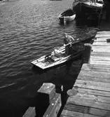 Text på skioptikonplåten: "En "silldag" i fiskhamnen."
