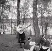 Kim Bergqvist, KFUM Friidrott 17 juli 1967 Tretton pojkar i tjugoårsåldern står tillsammans på Örebro järnvägsstation framför ett tåg. Fyra pojkar sitter framför de andra. Två av pojkarna har gitarrer. Många av dem är klädda i jackor. Resväskor syns på bilden.