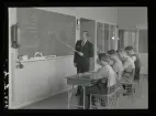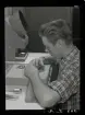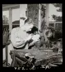 Kvinnor med halmbockar tillverkade för försäljning på Skansens julmarknad. Skansen, Stockholm.
