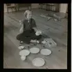 Kvinna med halmbockar tillverkade för försäljning på Skansens julmarknad. Skansen, Stockholm.