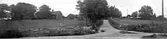 Fotografi från Albin Ahrenbergs resa till Grönland 1929. Vy över stad, hav och molnfylld himmel.