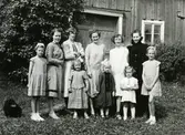 Sommargäster firar midsommar vid Torrekulla "Månses" (fotografen Bernhard Olssons föräldrahem), okänt årtal.